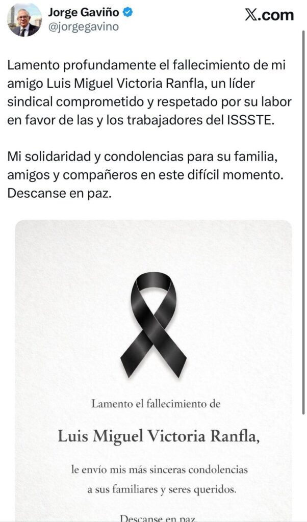 Figuras públicas, como Jorge Gaviño, secretario general del IMSS, lamentaron el fallecimiento a través de redes sociales, describiendo a Victoria Ranfla como un líder comprometido con los derechos de los trabajadores de la salud.