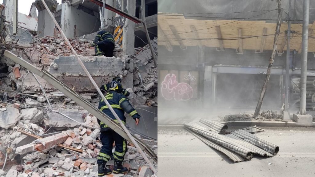 Tres niveles de un edificio en proceso de demolición colapsaron este lunes sobre la Calzada San Antonio Abad, en la